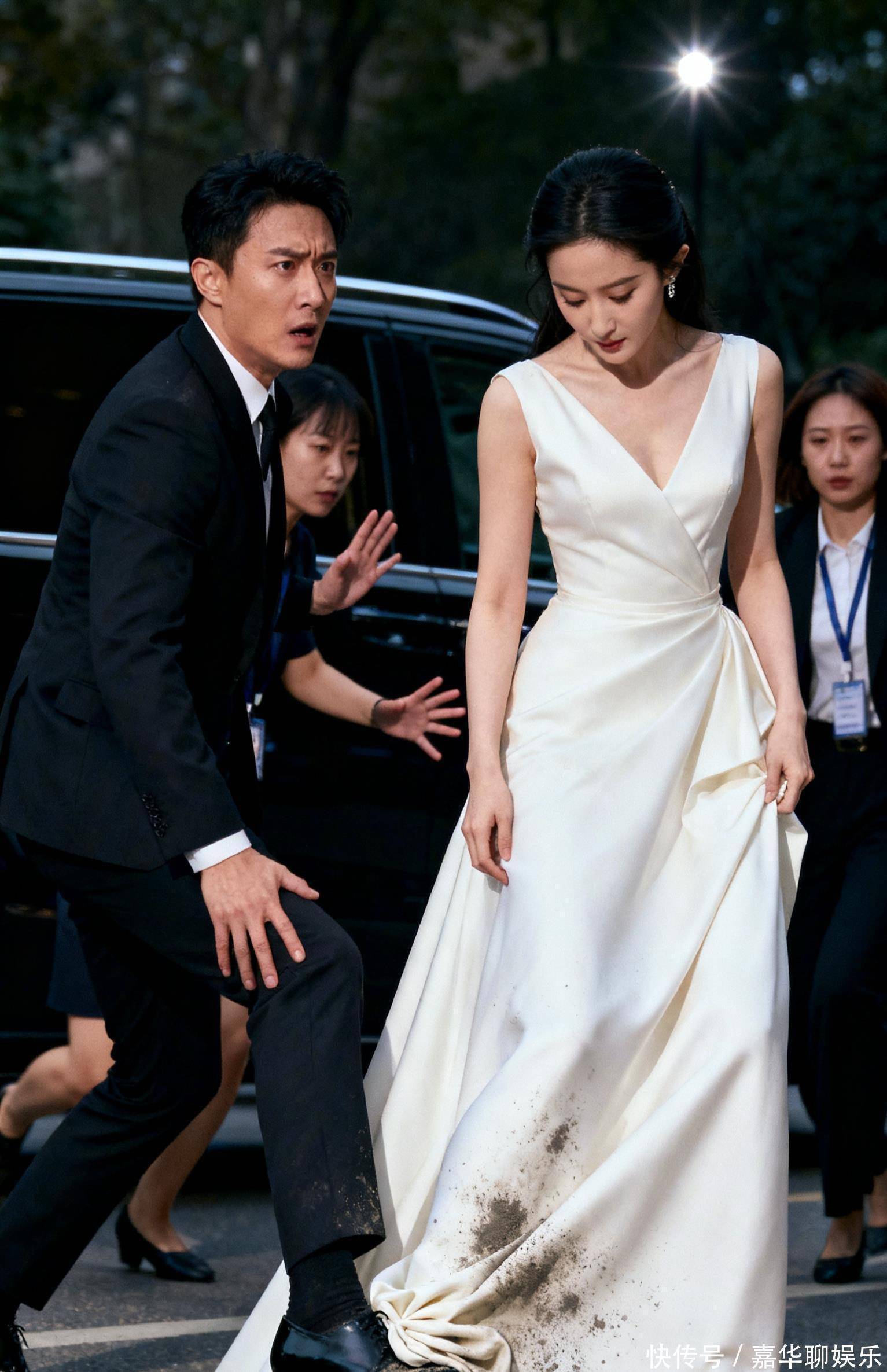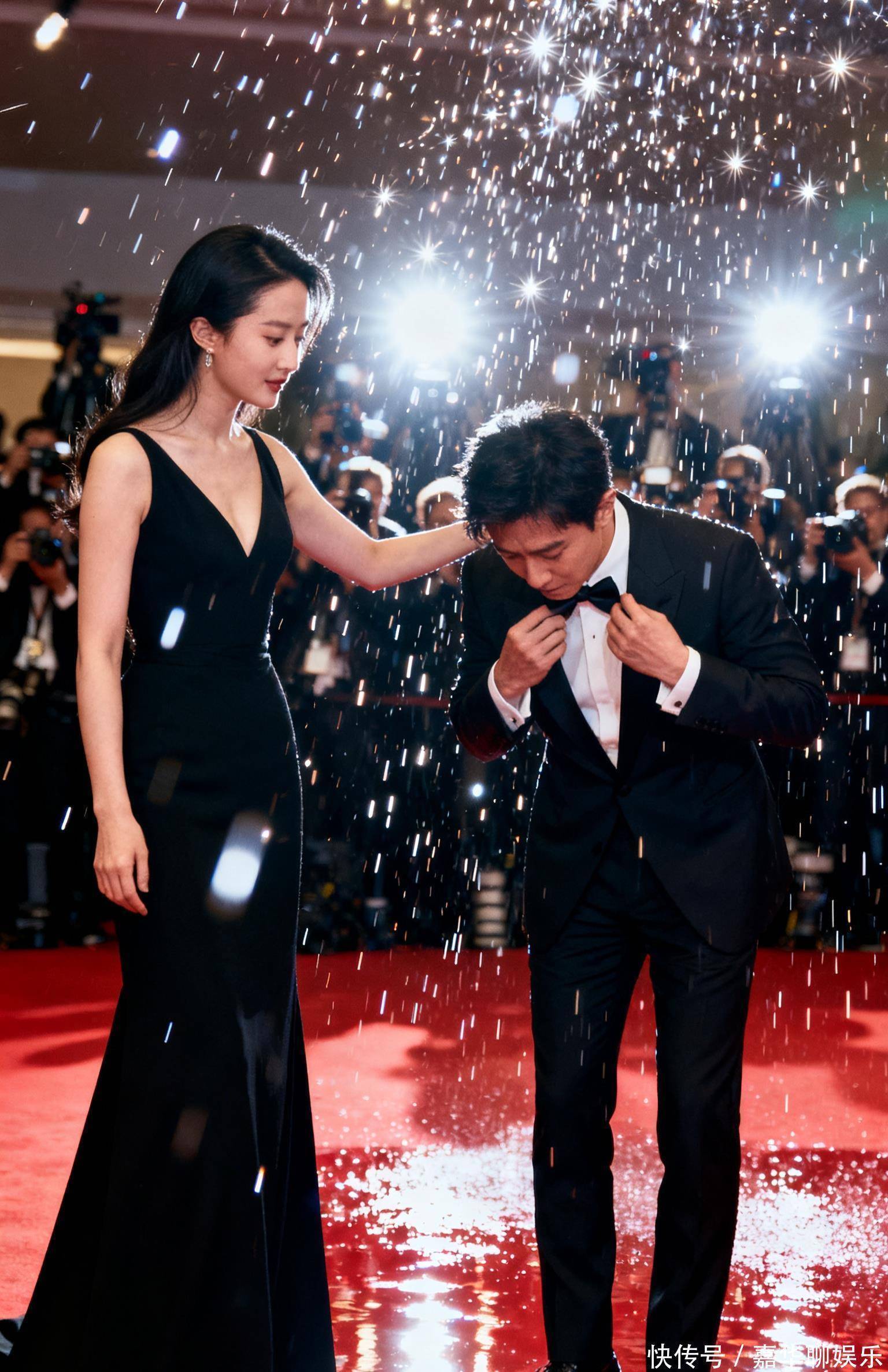 十月的北京秋夜,星光影视基地的红毯像撒了碎钻的长河。聚光灯下,刘冲攥着西装下摆的手沁出薄汗——作为刚凭网剧崭露头角的新人,这是他第一次站上顶级电影节红毯。 “下一组,刘冲、刘亦菲!”主持人的报幕让他喉结滚动。身旁助理递来矿泉水时还在叮嘱:“别踩裙角,菲姐的礼服从巴黎空运来的……”话音未落,他已跟着刘亦菲踏上红毯。 意外来得毫无预兆。刘亦菲身着一袭月白色鱼尾裙,拖尾近三米,绣着银线牡丹。刘冲侧身配合采访时,高跟鞋跟不偏不倚磕在裙角褶皱处。“嘶——”极轻的闷响,他猛地顿住,心跳声盖过了现场快门。 全场静了半拍。助理冲上来要拽刘冲,刘亦菲却先低头。月光色裙摆沾了灰,她却弯起眼睛,指尖轻轻抚过被踩的位置:“没事,这绣线本来就是做旧工艺。”声音像浸了温水的丝绸,“倒是你,别吓自己——我当年走戛纳,还被自己裙子绊过呢。” 闪光灯骤然密集。刘冲耳尖通红,忙不迭鞠躬:“对不起菲姐!我……” “知道你紧张。”刘亦菲直起身,顺手帮他理了理歪掉的领结,“下次红毯前,记得先跟礼仪老师走两步。” 后来这段视频上了热搜。评论区有人笑称“新人社死名场面”,更多人在说:“刘亦菲弯腰的那一刻,比裙角的银线还亮。” 所谓高光时刻,未必是捧奖杯的瞬间。或许只是红毯上一次慌乱的踉跄,和随之而来的,带着温度的低头与弯腰。